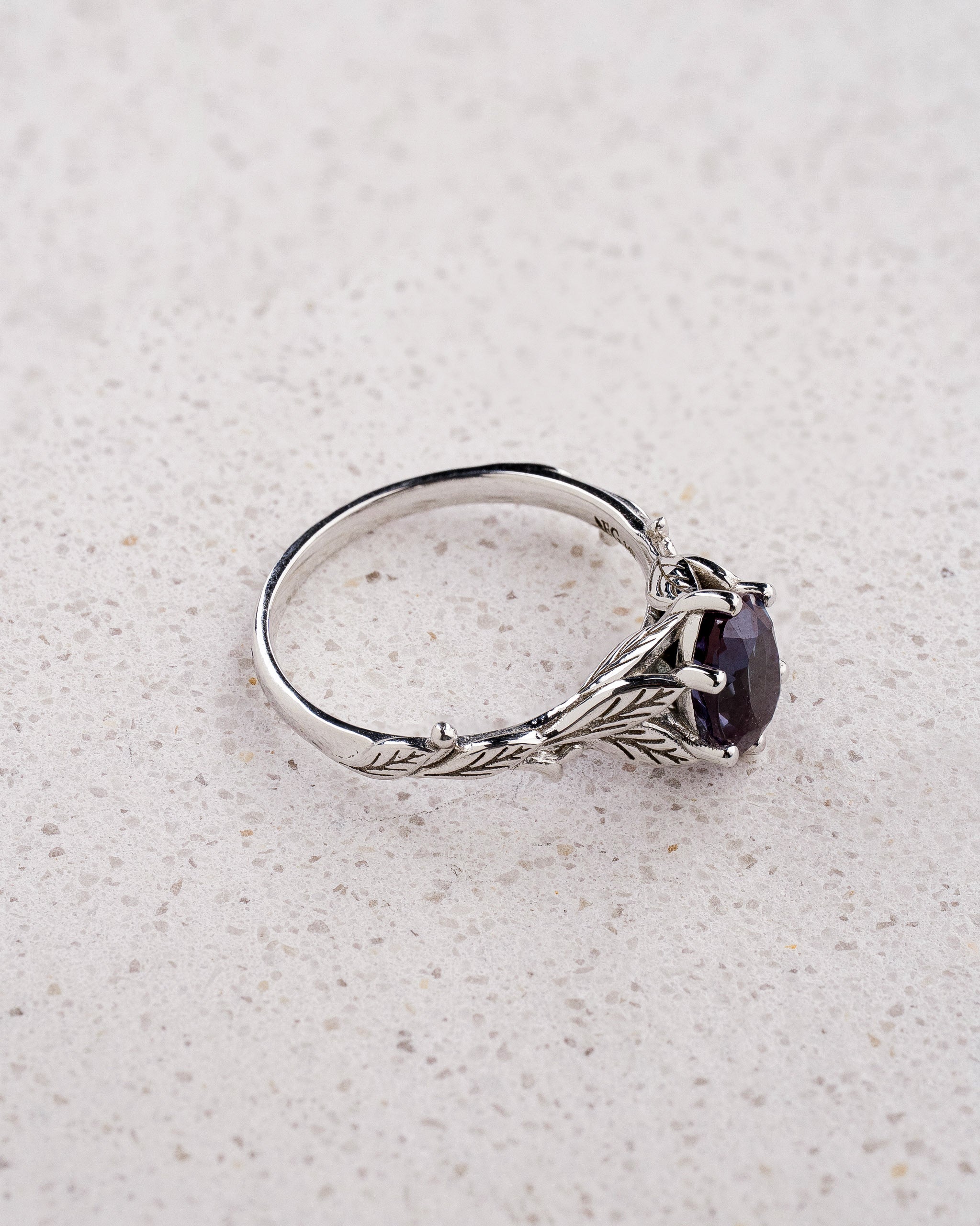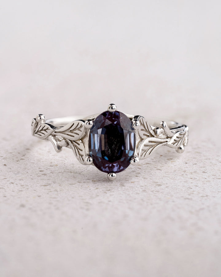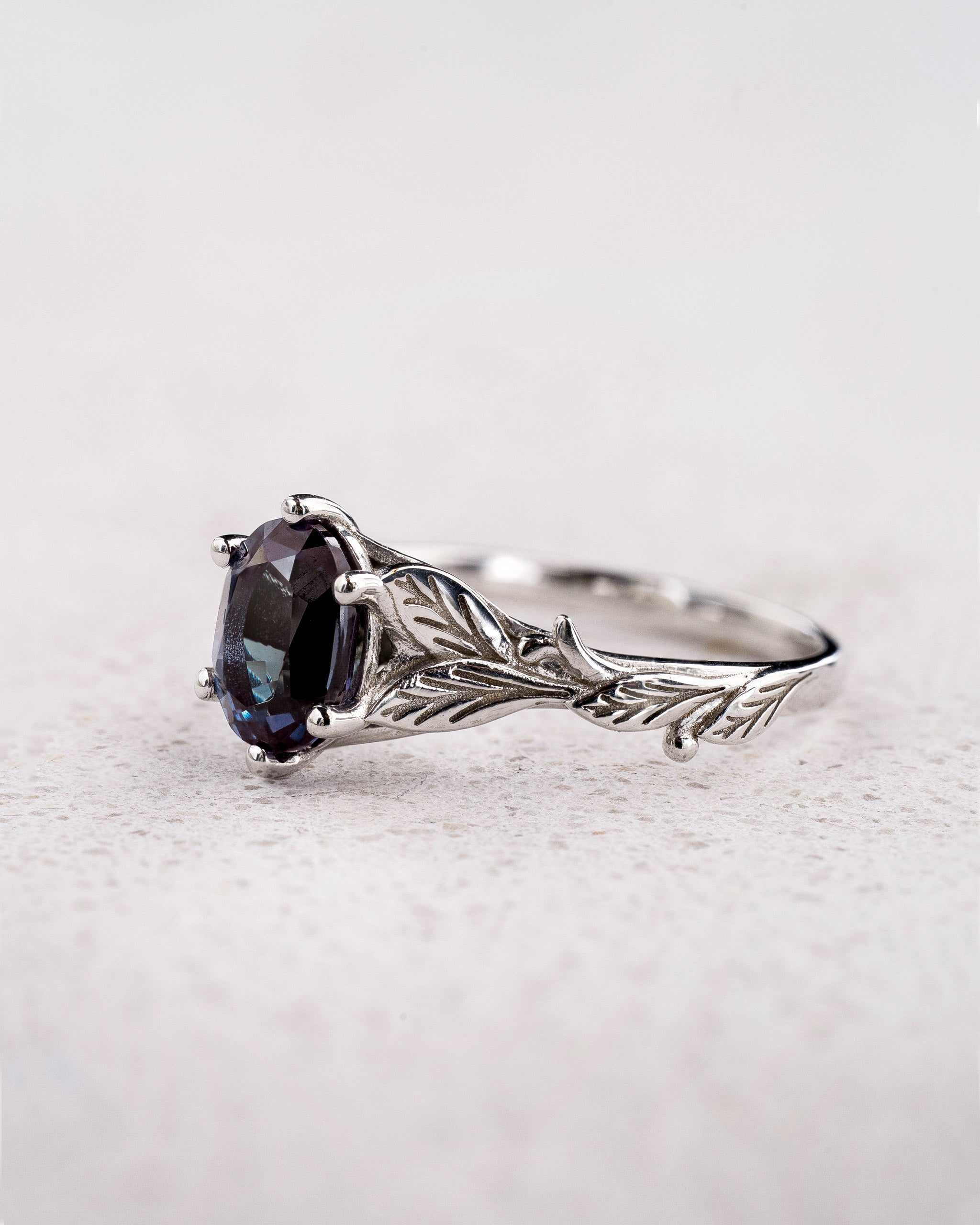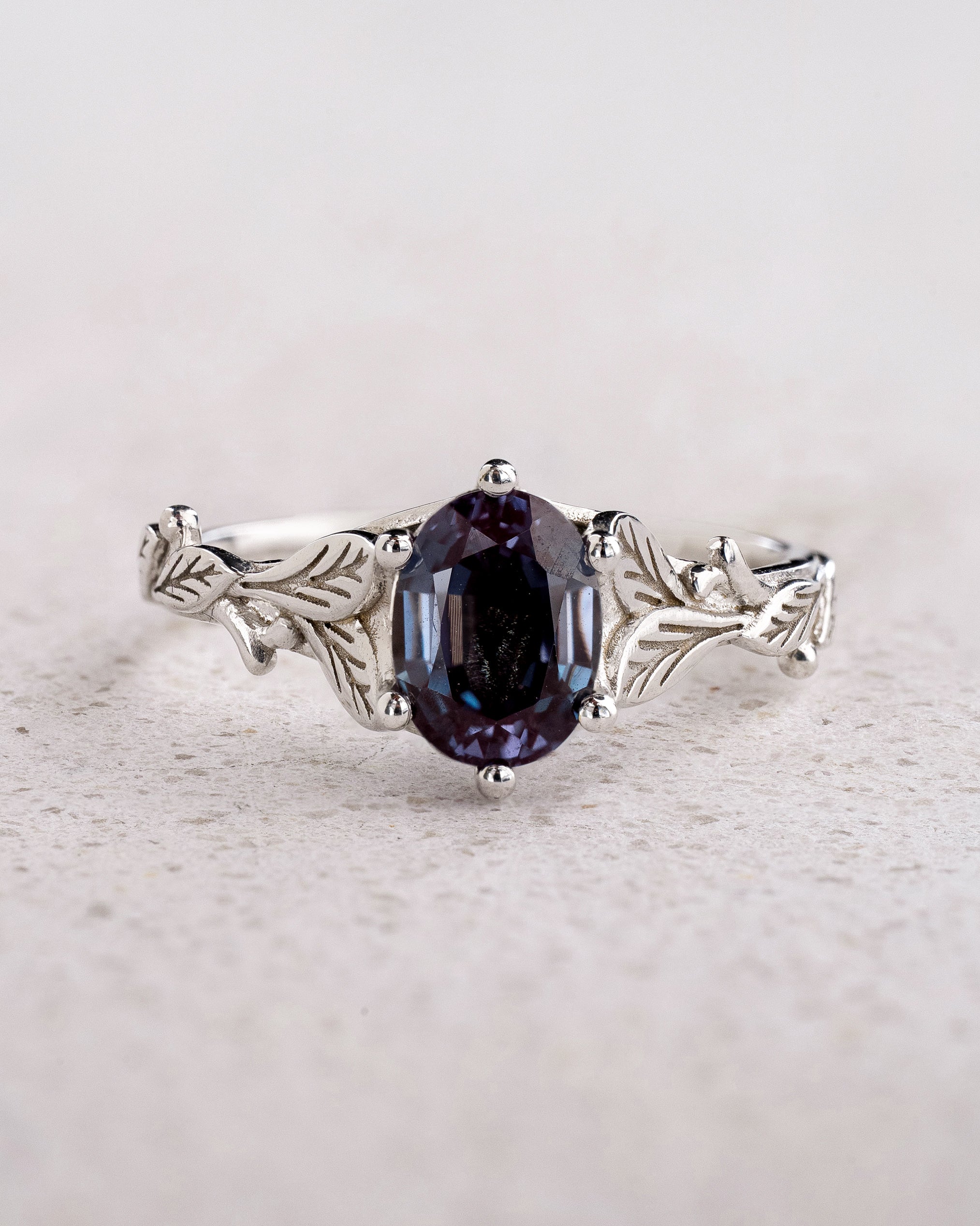 Leafy Engagement Ring with Oval Color-Changing Alexandrite / Freesia