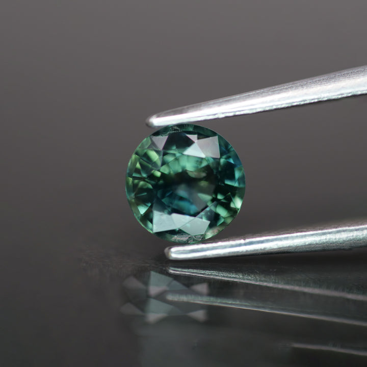 Sapphire | natural, teal color/color changing, round-cut, *5.5mm, *0.7ct