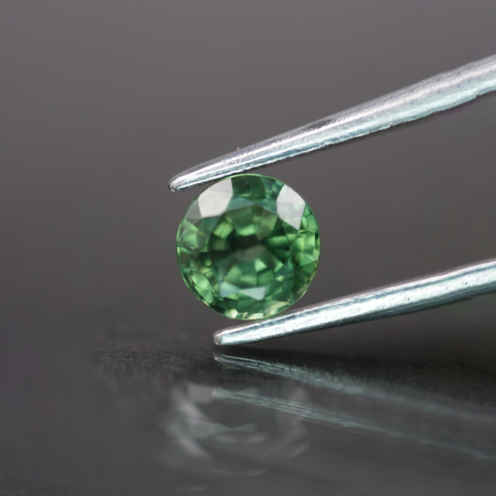 Sapphire | natural, teal color/color changing, round-cut, 5mm, *0.7ct