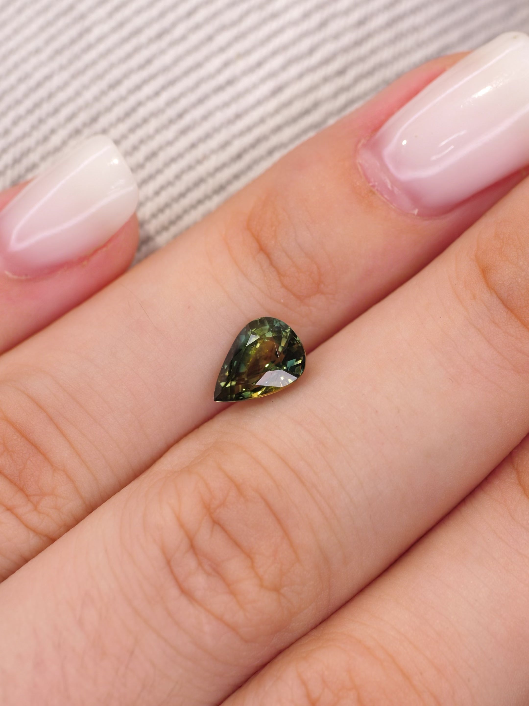 Sapphire | natural, teal color/color changing, pear-cut, *8x6mm, *1.3ct