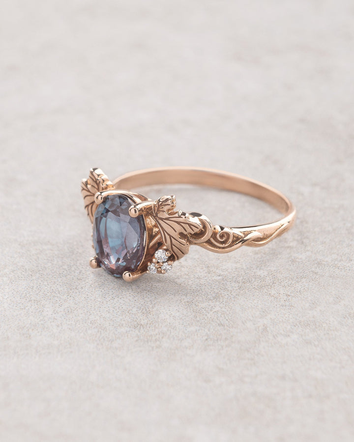 Oval cut lab-created alexandrite and lab grown diamonds engagement ring / Vineyard