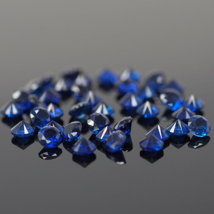 Sapphire | lab-grown, dark blue color, round-cut, accent stones