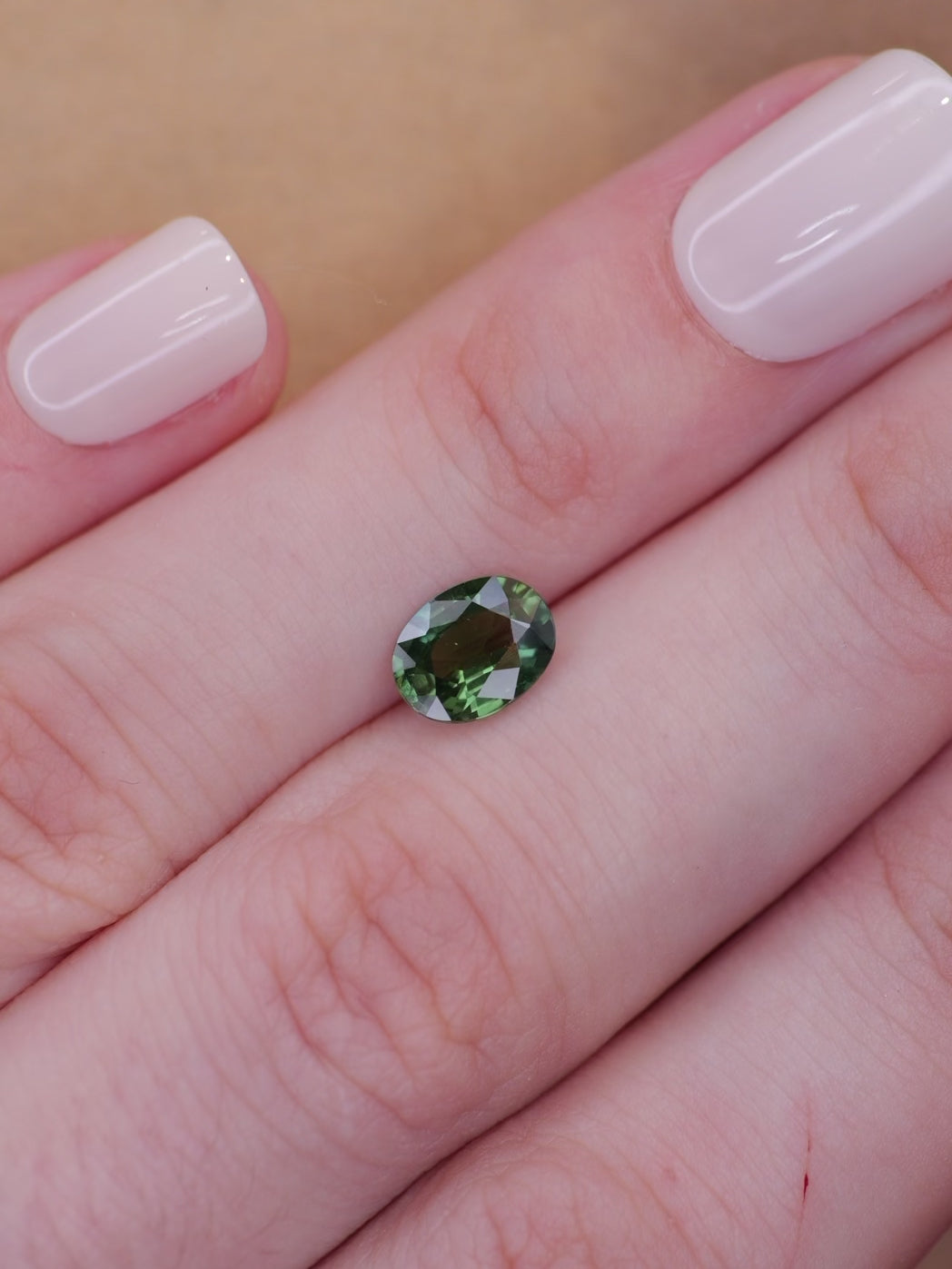 Sapphire | natural, green color, oval-cut, 7x5.4mm, *1ct