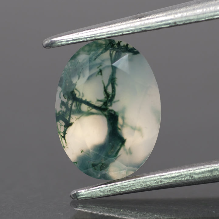 One of a kind moss agate | natural, green color, oval-cut, 8x6mm, 1.1ct