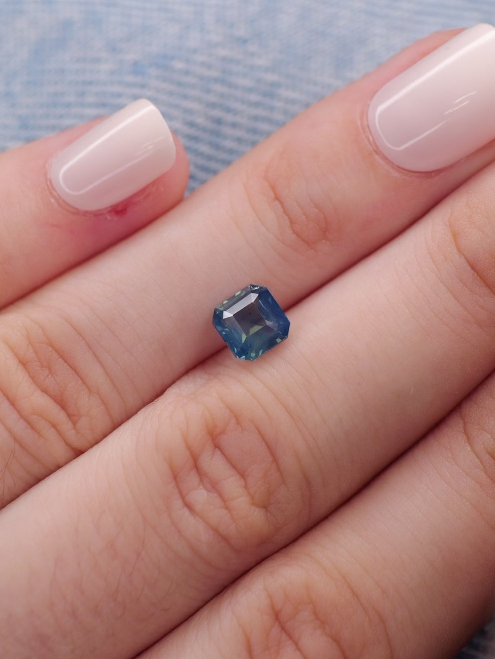 Opalescent Sapphire | CGL Certified | natural, greenish blue color, asscher-cut, *5.5mm, 1.1ct, Madagascar