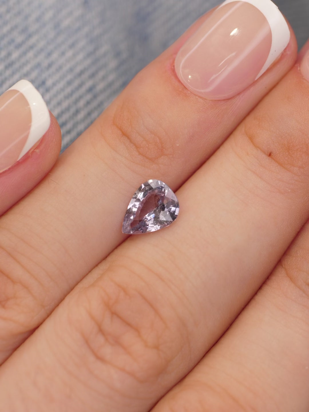 Sapphire | natural, purplish grey color, pear-cut, 8x6mm, 1.2ct