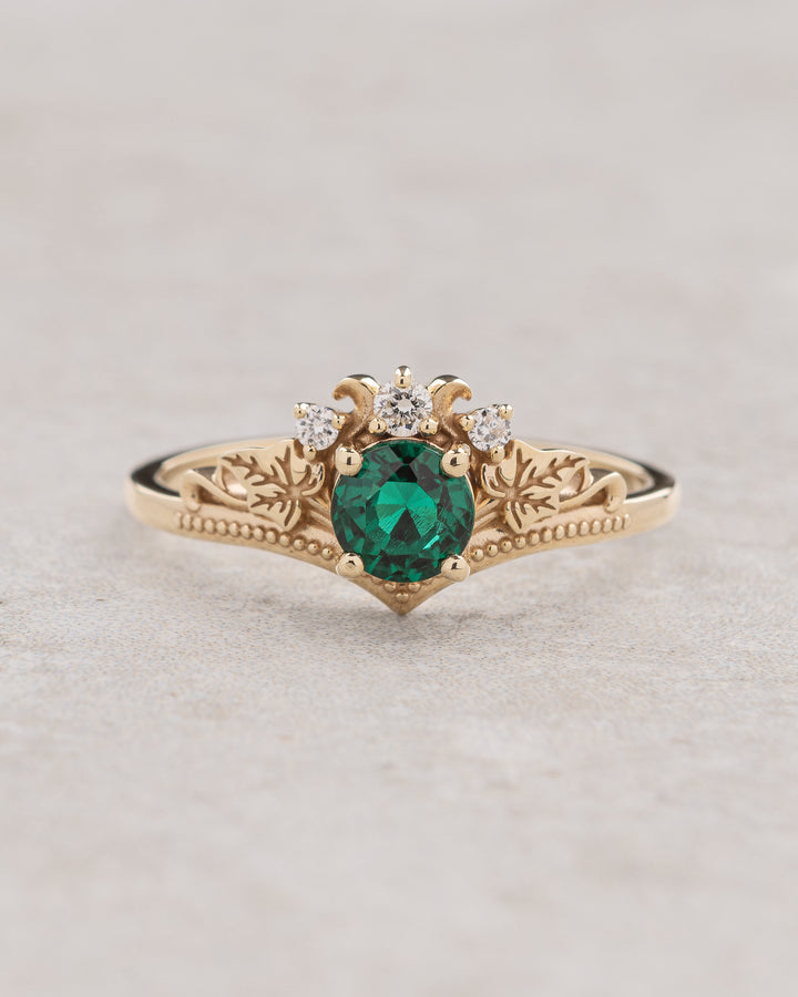 Vivid lab grown emerald engagement ring with golden ivy leaves / Ariadne - Eden Garden Jewelry™