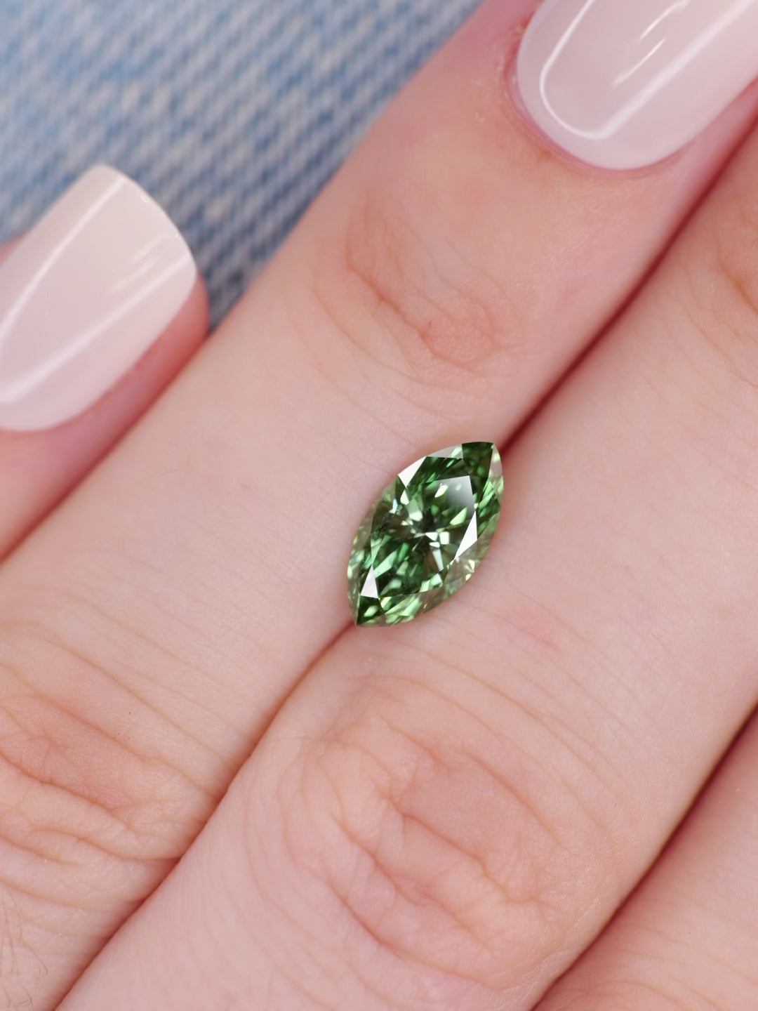 Lab grown diamond | IGI certified | marquise-cut, 10x5mm, Fancy vivid green color, VS1, 1ct - Eden Garden Jewelry™