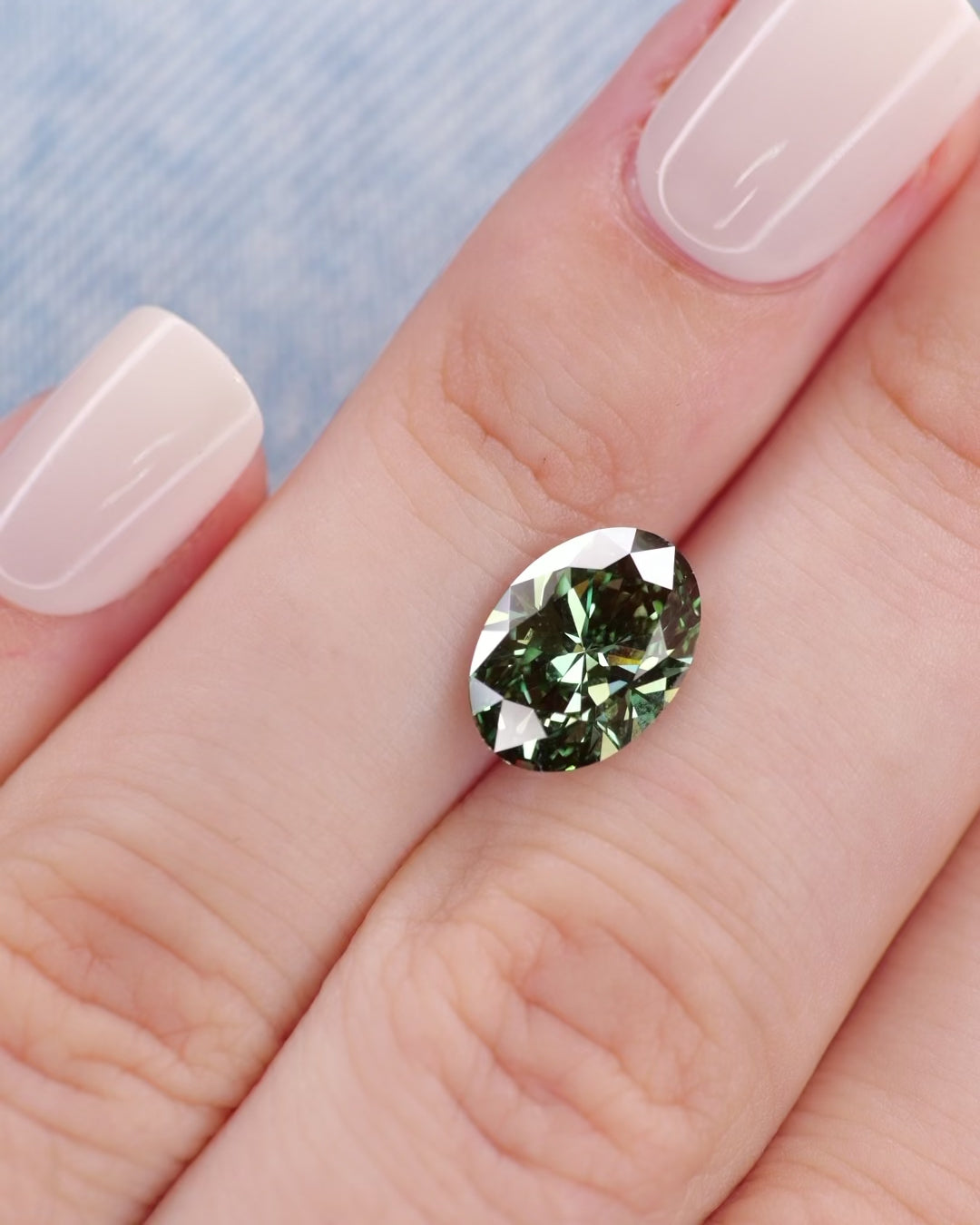 Lab grown diamond | IGI certified | oval-cut, *10x7mm, Fancy vivid green color, VS2, 2ct