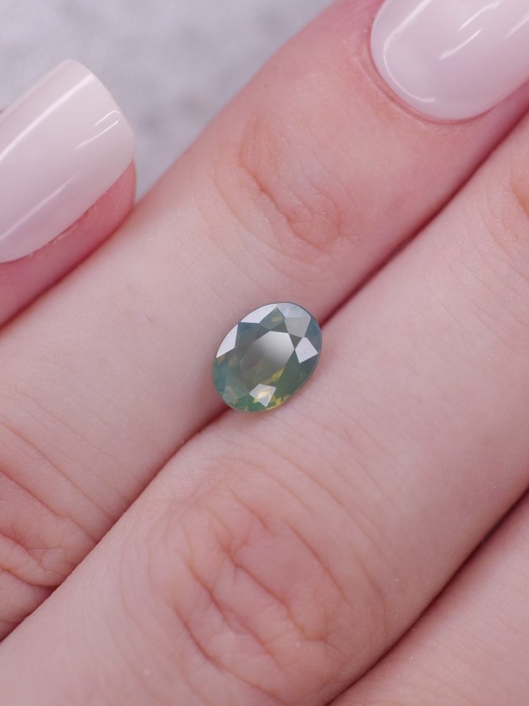 Opalescent Sapphire | natural, multicolor: blue, green & yellow, oval-cut, *7x5mm, 1.2ct