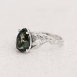 READY TO SHIP Patricia ring with natural moss agate, 14K white gold, AVAILABLE RING SIZES 5.5 - 8.5 US