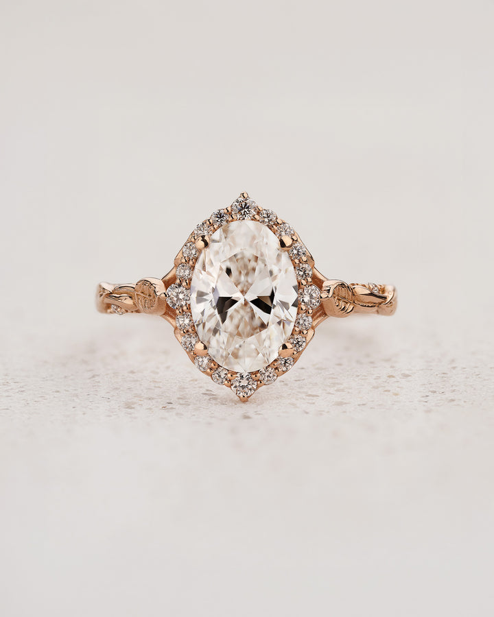Engagement Ring with Oval Diamond and Leaf Motifs / Florentina