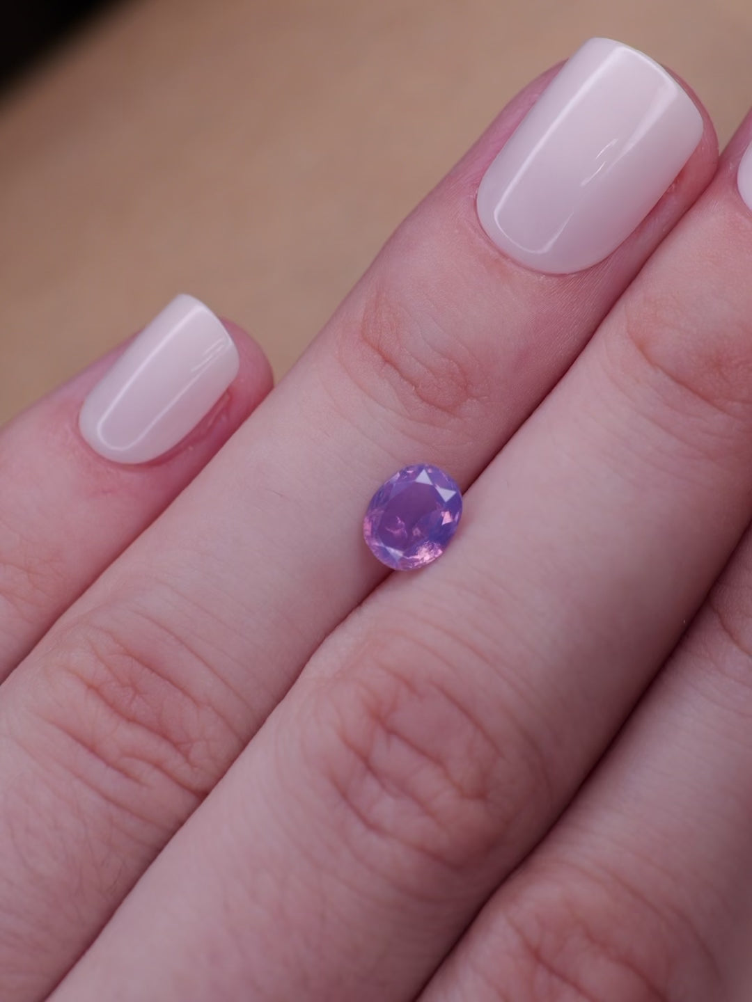 Opalescent sapphire | natural, pinkish purple color, oval-cut, *7x5mm, *0.8ct