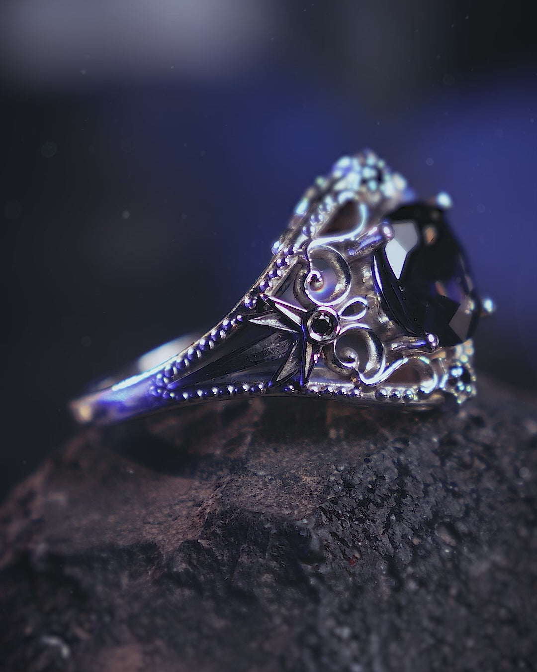 READY TO SHIP: Cosmic engagement ring with grey spinel and black diamonds / Galaxia, RING SIZE 7 US - Eden Garden Jewelry™