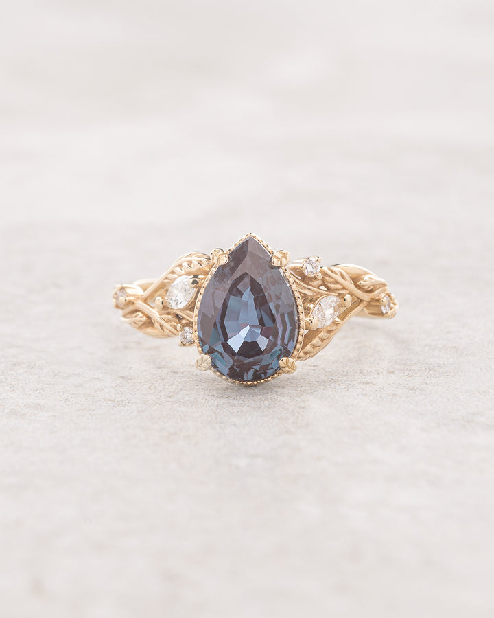 Colour changing alexandrite engagement ring, yellow gold proposal ring with diamonds / Patricia - Eden Garden Jewelry™