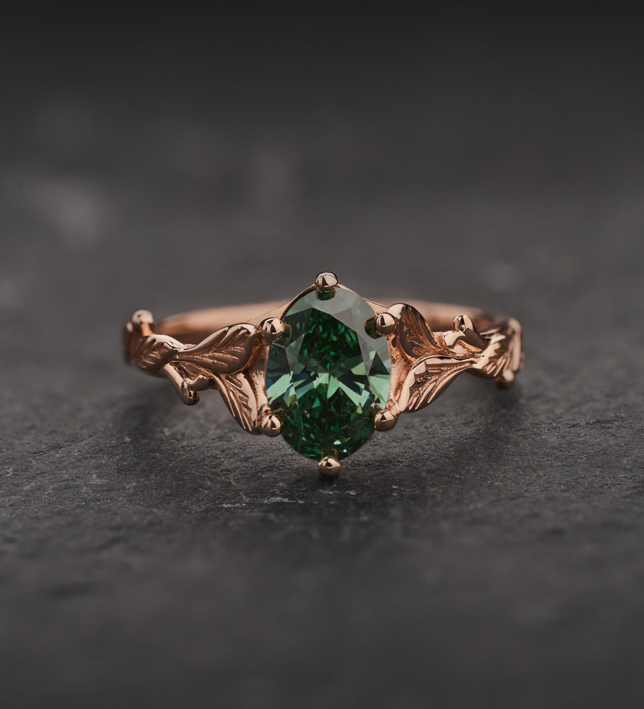 READY TO SHIP: Freesia ring with green lab-grown diamond, 14K rose gold, AVAILABLE RING SIZES: 5.5 - 8.5 US