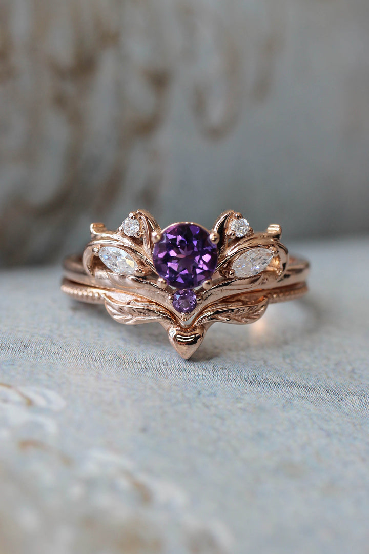 Bridal ring set with amethyst / Swanlake - Eden Garden Jewelry™