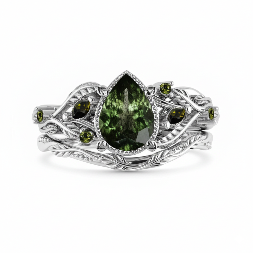 Custom order: Patricia bridal set with rutile peridot & accent tourmalines