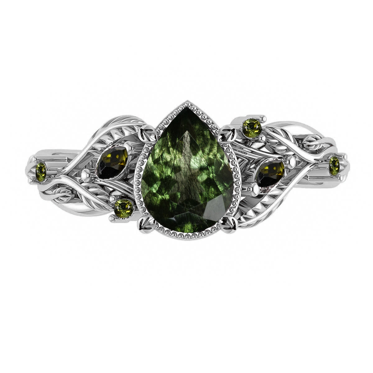 Central gemstone: rutile peridot, pear-cut, 8x6mm, 1ct