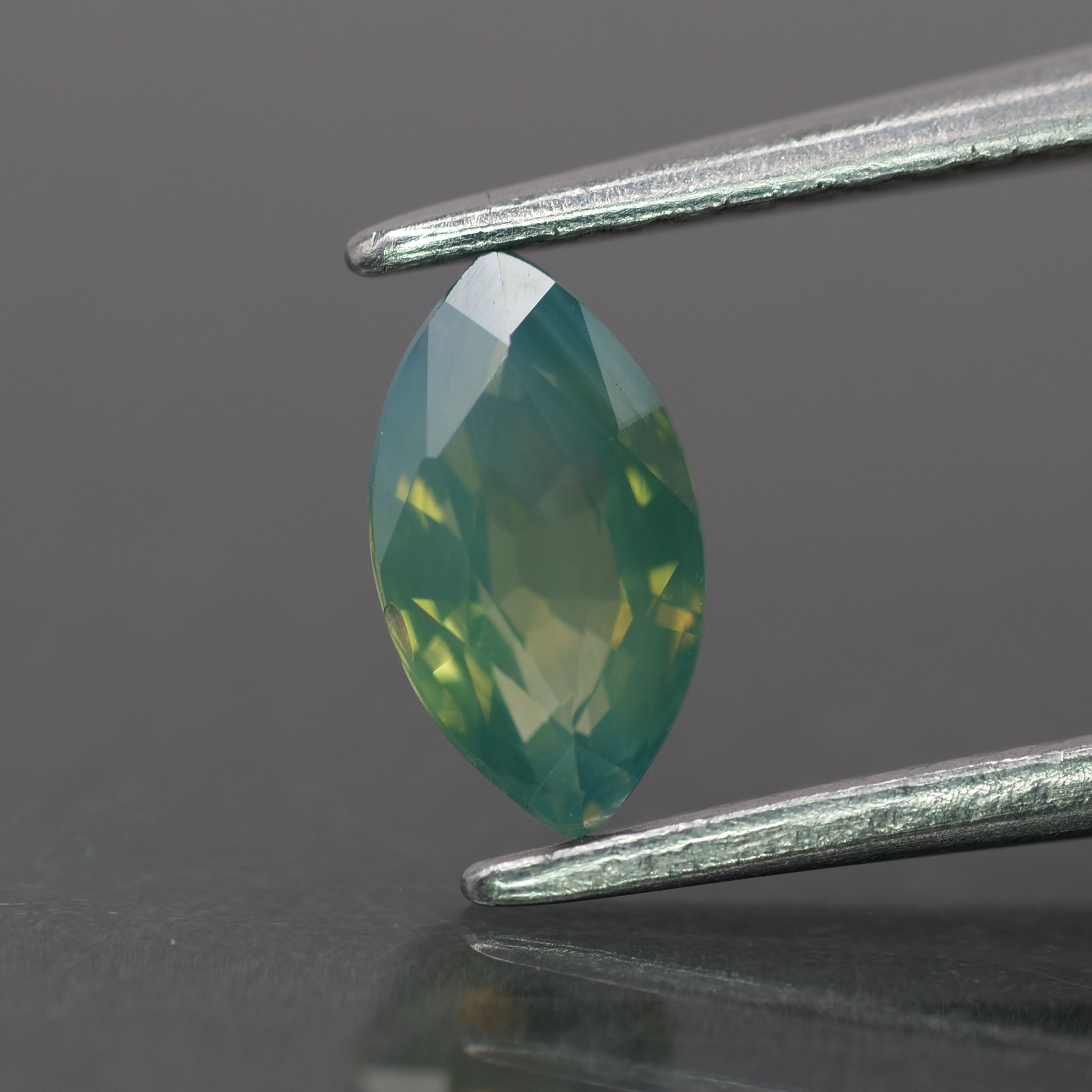 Opalescent Sapphire | natural, hazy waves: yellowish green color, marquise-cut, *7x4mm, 0.68ct, Madagascar