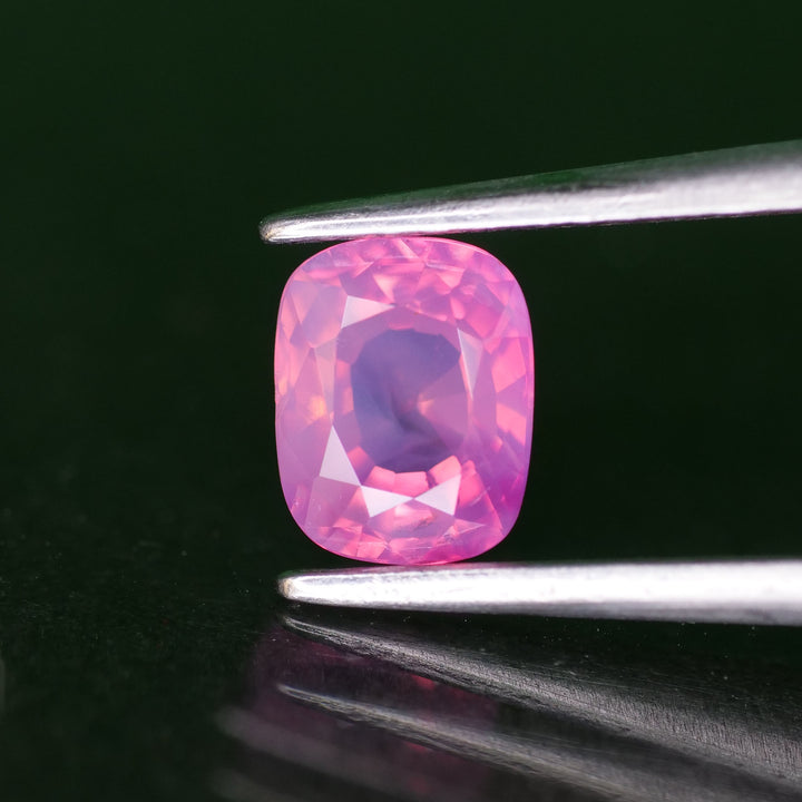 Opalescent sapphire | natural, purplish pink color, cushion-cut, *6x5mm, 0.9ct