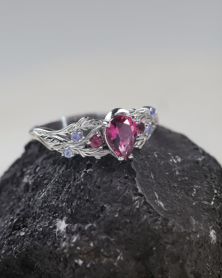 Natural pink tourmaline engagement ring with tourmalines and tanzanites / Japanese Maple