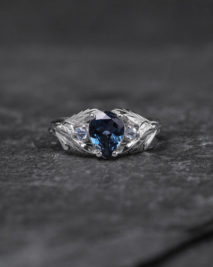 READY TO SHIP: Wisteria in 14K white gold, pear-cut topaz 8x6mm, accent aquamarines, AVAILABLE RING SIZES: 5.5 - 8.5 US