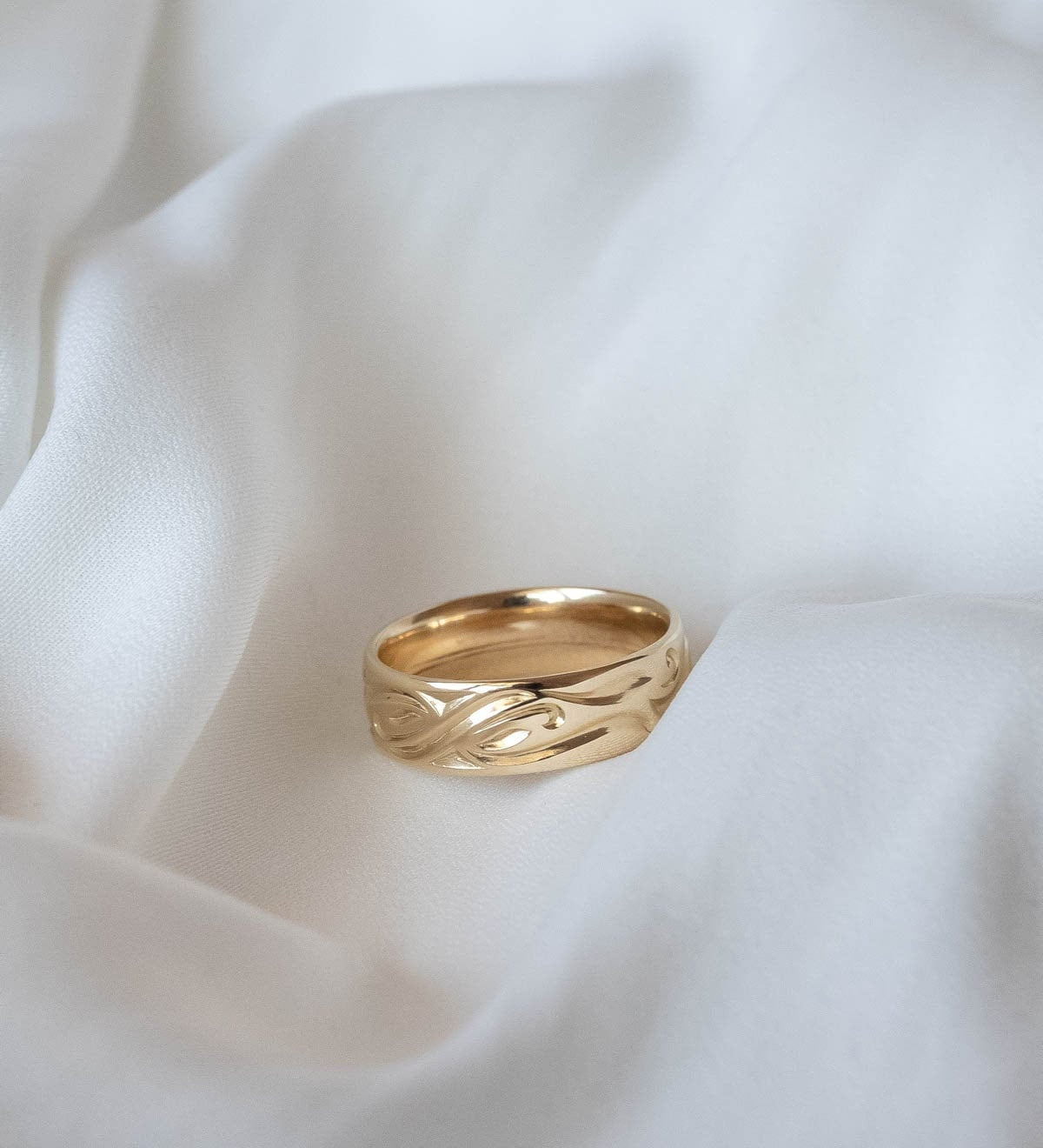 Custom order/MODIFICATION: Black and gold oak band with moss agates