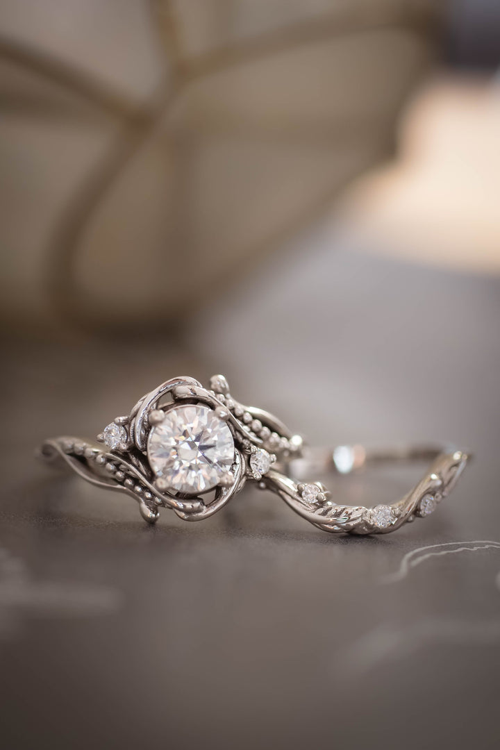 This listing is for the set of two rings: 1 carat lab grown diamond Undina ring and matching wedding band with small lab grown / natural diamonds