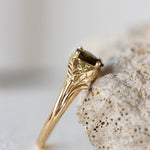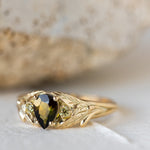Green tourmaline engagement ring, gold leaf ring with side yellow sapphires / Wisteria - Eden Garden Jewelry™