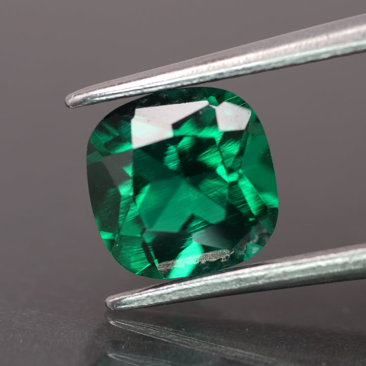 Emerald | Lab-Created Hydrothermal, cushion-cut, 7mm, 1.4ct