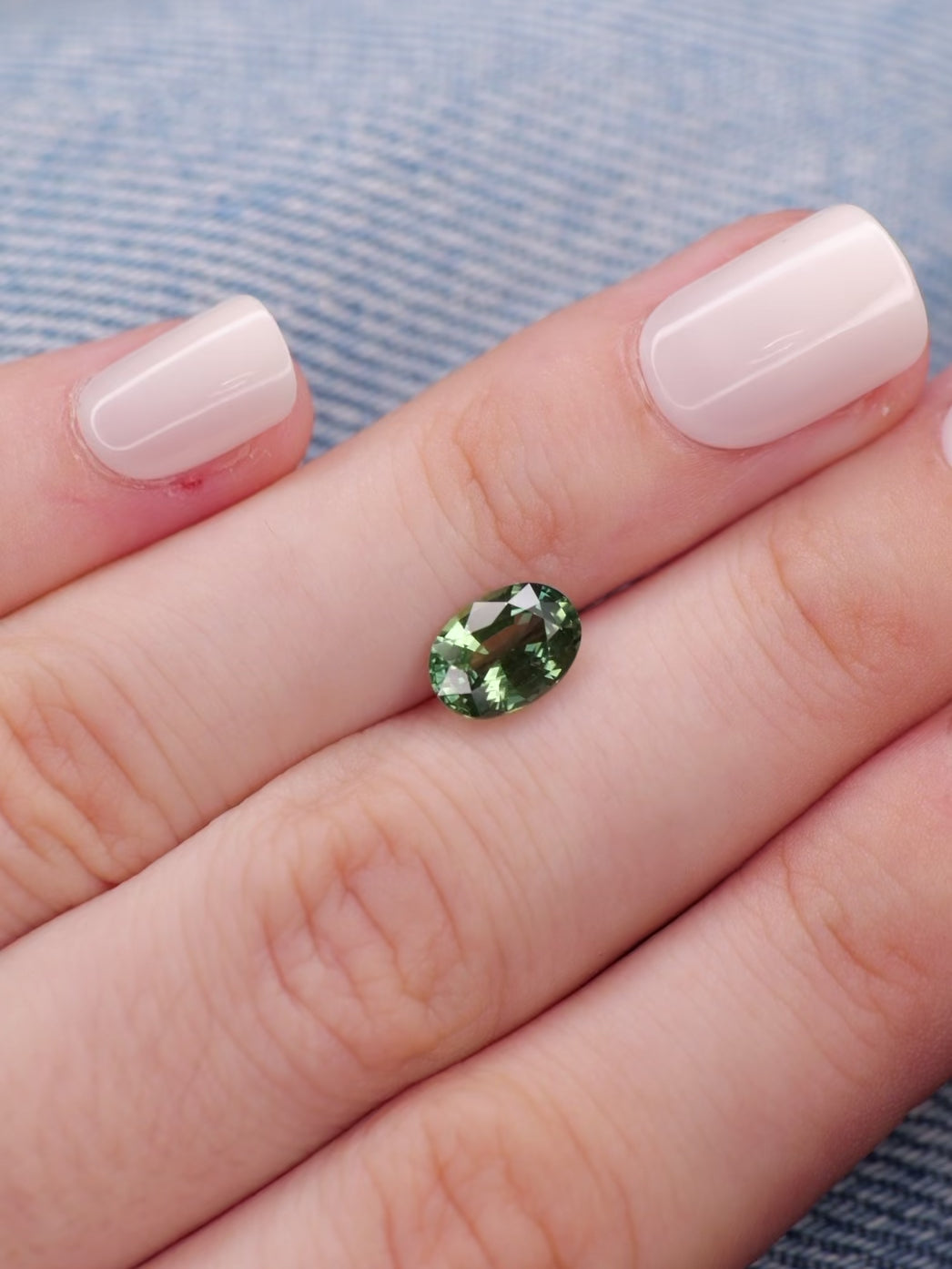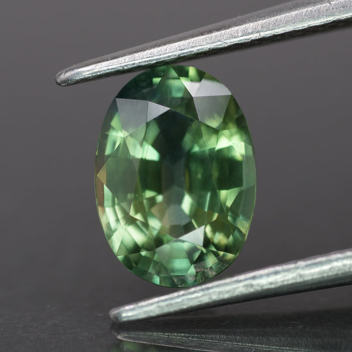Sapphire | natural, green color, oval-cut, 8x6mm, 1.6ct