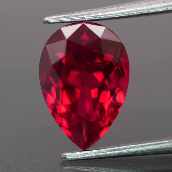 Ruby | red color, lab created, pear-cut, 10x7mm, 2.50ct