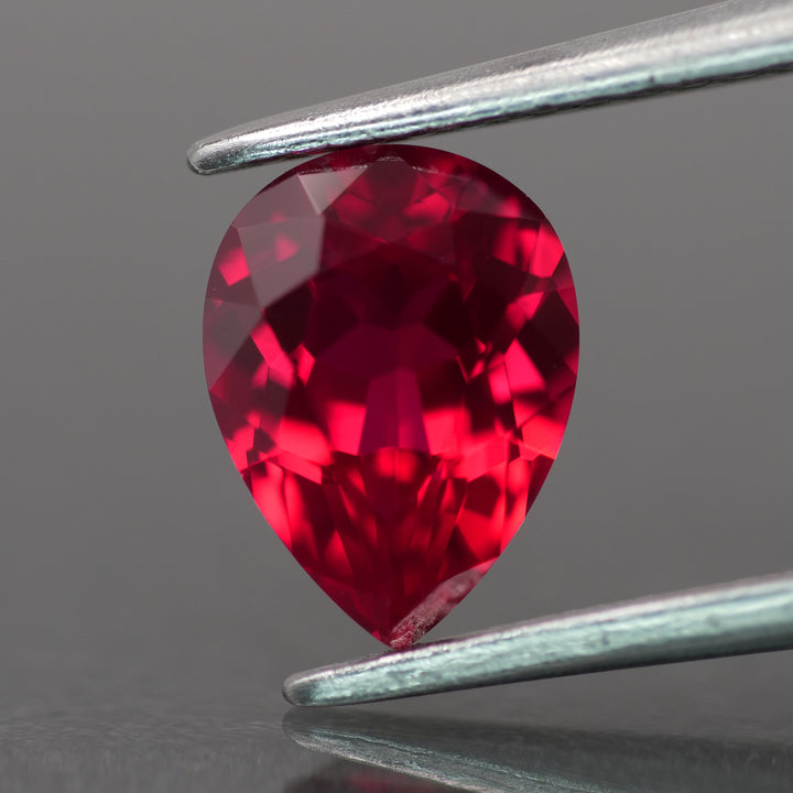 Ruby | red color, lab created, pear-cut, 8x6mm, 1.5ct