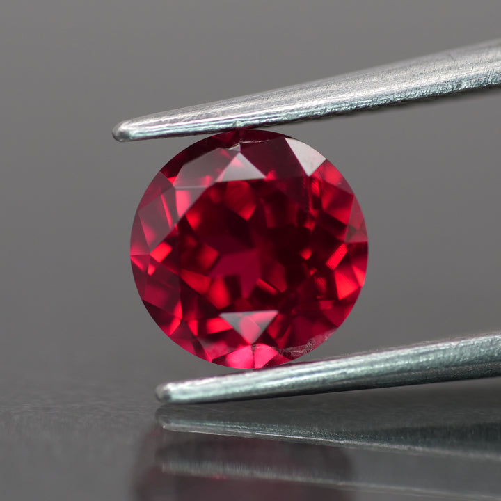 Ruby | red color, lab created, round-cut, 6.5mm, 1.7ct