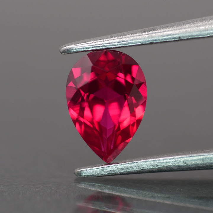 Ruby | red color, lab created, pear-cut, 7x5mm, 1ct