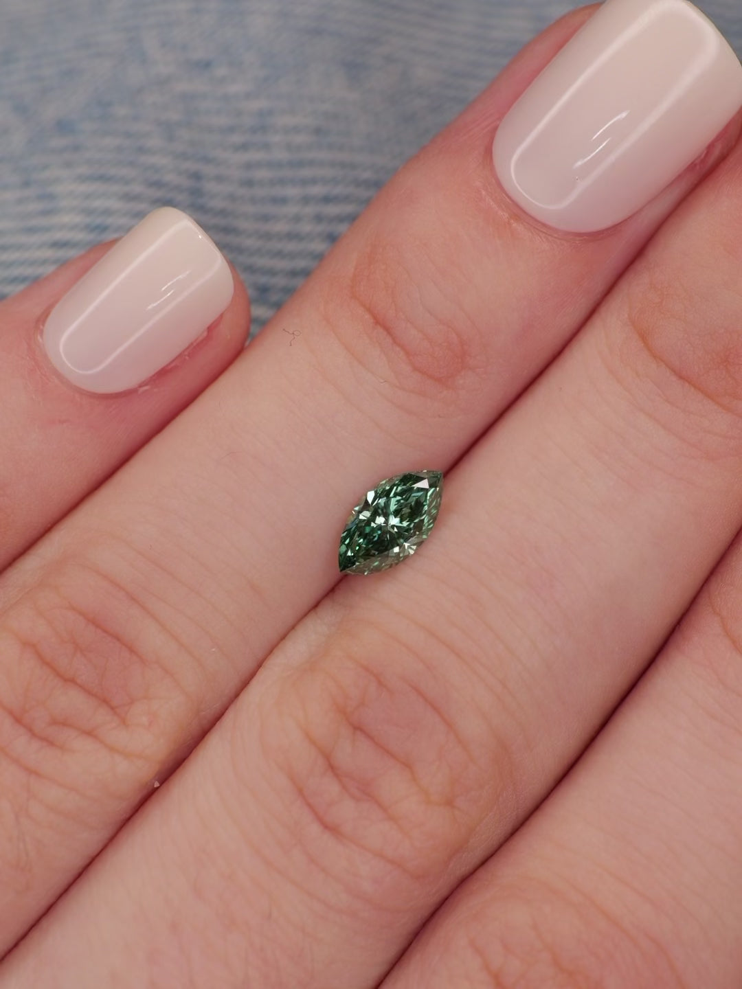 Lab grown diamond | IGI certified | marquise-cut, 8x4mm, Fancy vivid green color, VVS2, 0.88ct