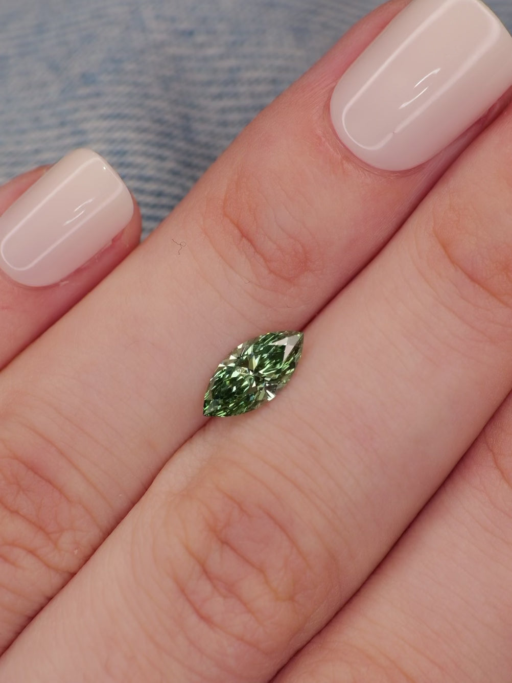 Lab grown diamond | IGI certified | marquise-cut, *9.5x4.5mm, Fancy vivid green color, VVS2, 0.73ct