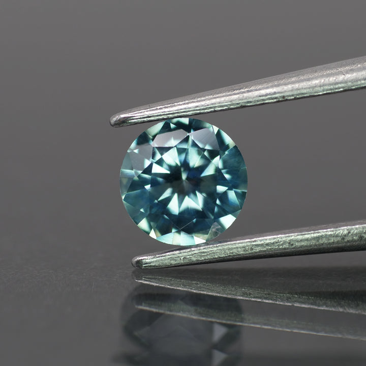 Sapphire | natural, teal color, round-cut, *5.5mm, 0.7ct