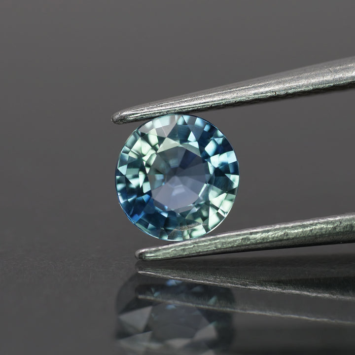 Sapphire | natural, light teal color, round-cut, *5.5mm, 0.8ct