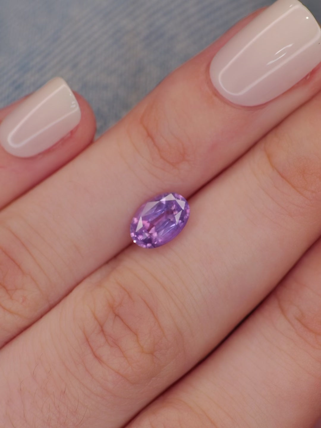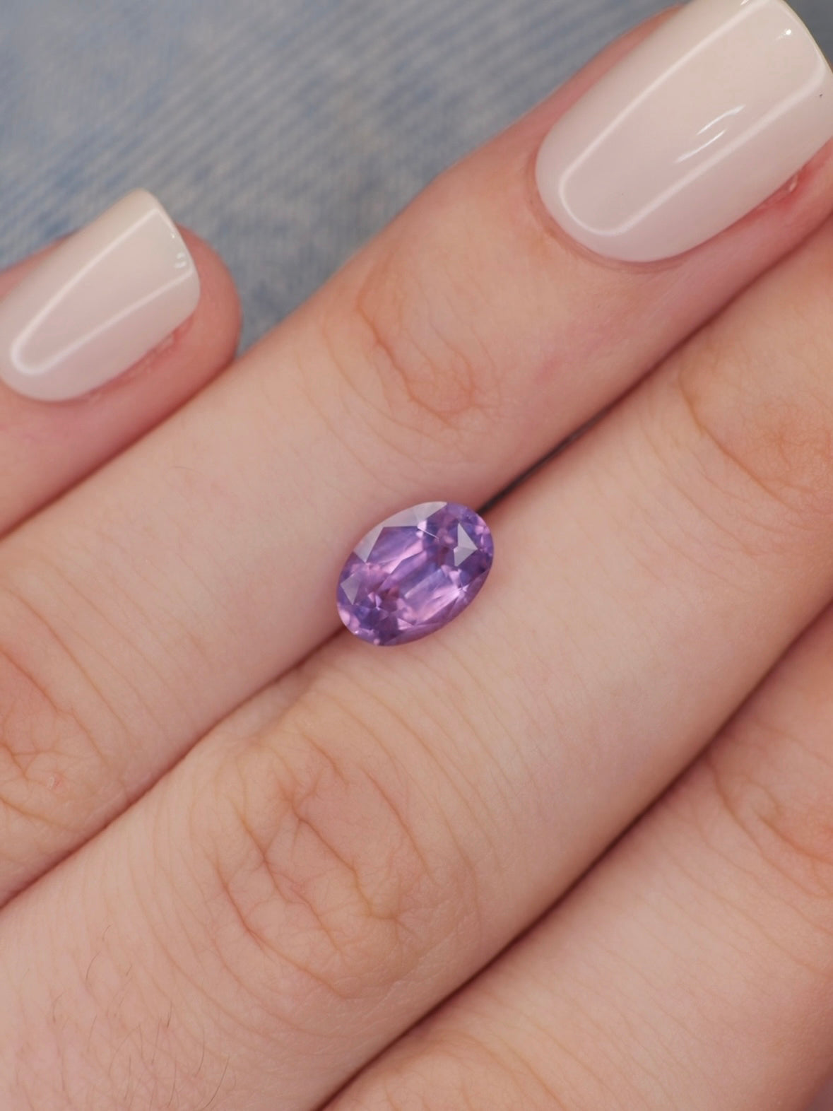 Opalescent sapphire | natural, purplish pink color, oval-cut, 8x5.5mm, 1.6ct