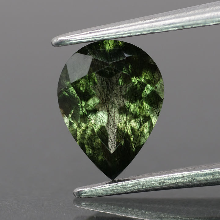 Rutile Peridot | natural, green color, pear-cut, 8x6mm, 1ct - choose yours