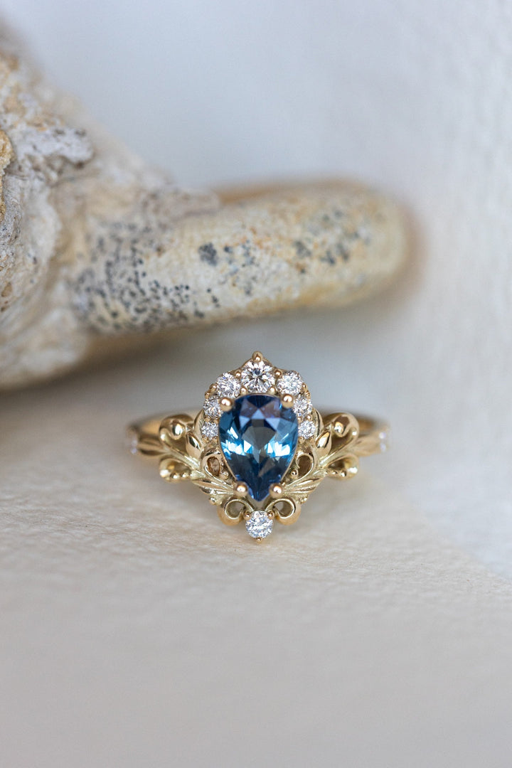 Natural blue sapphire engagement ring, baroque inspired gold ring with diamonds / Sophie - Eden Garden Jewelry™