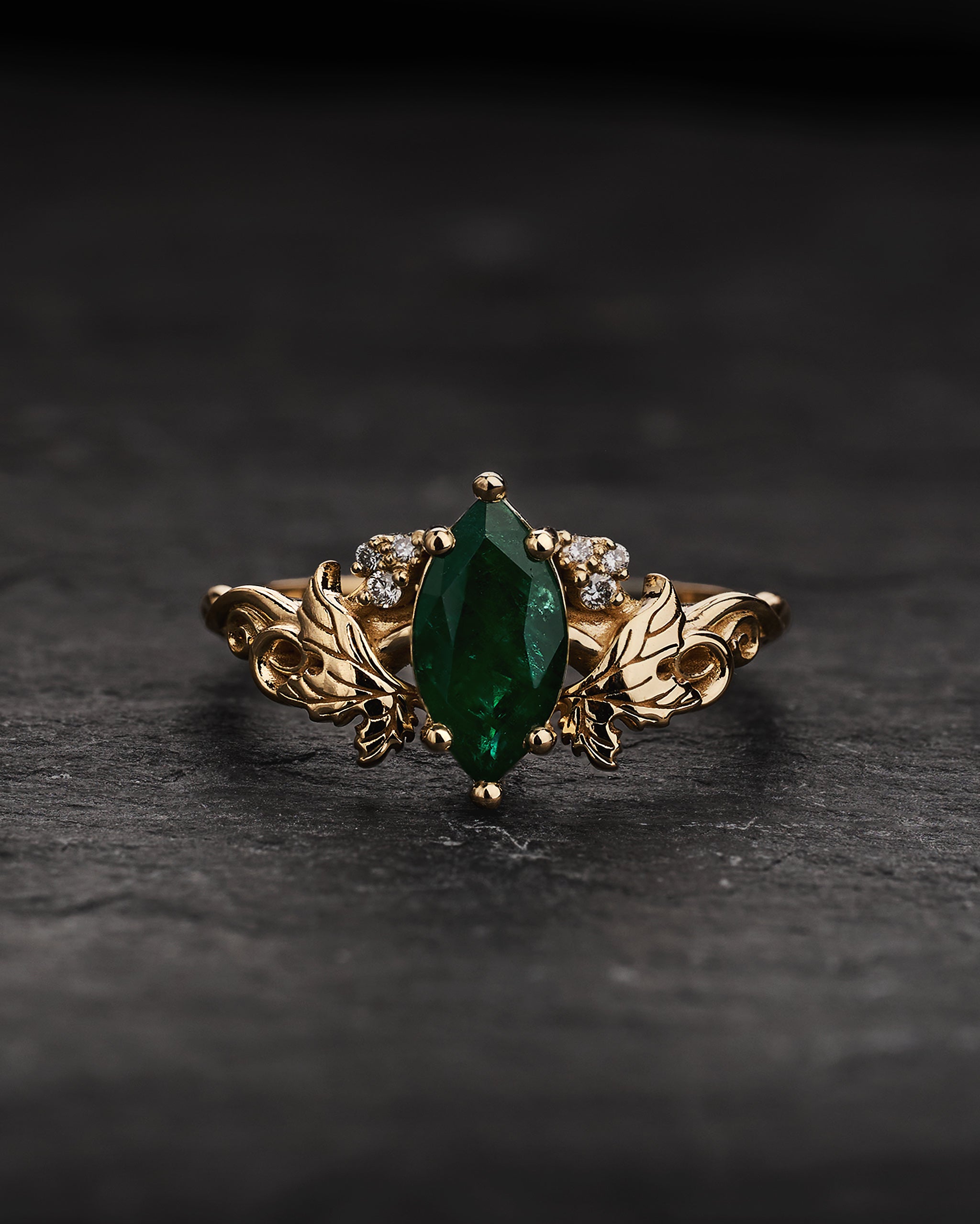 Natural Emerald Engagement Ring in Marquise Cut / Vineyard