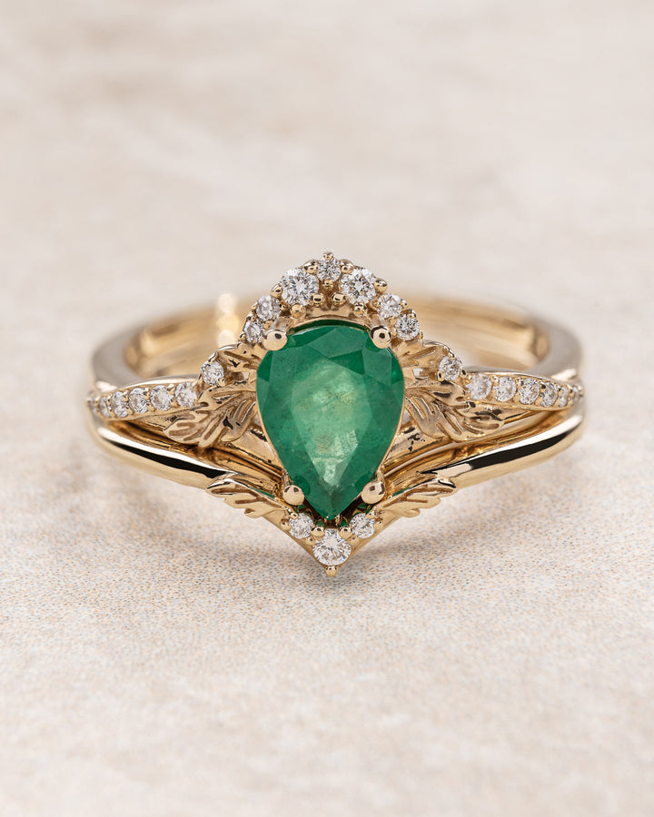 Magnificent genuine emerald bridal ring set / Amelia - Eden Garden Jewelry™