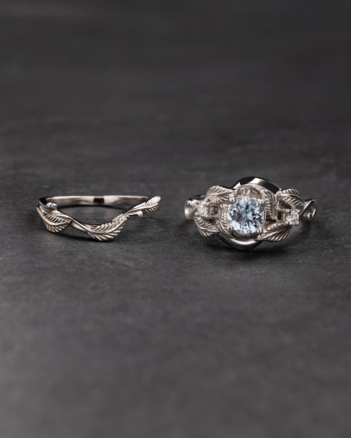 Light blue aquamarine and diamonds bridal ring set / Azalea - Eden Garden Jewelry™