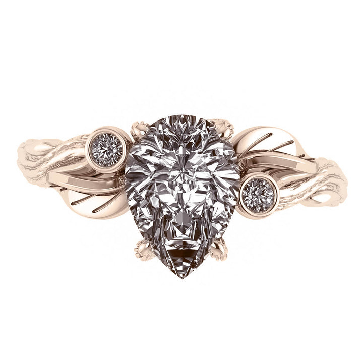 Visualisation shows pear cut gemstone, 10x7mm. We can customise this setting for other sizes and shapes as well.
