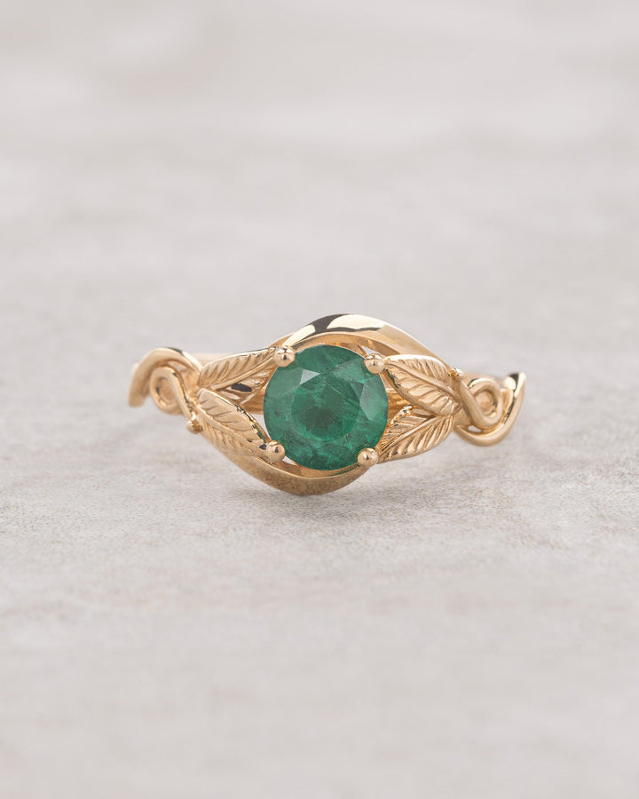 READY TO SHIP: Azalea engagement ring in 14K yellow gold, natural emerald, round cut 6 mm, AVAILABLE RING SIZE: 5.5 - 8.5 US - Eden Garden Jewelry™