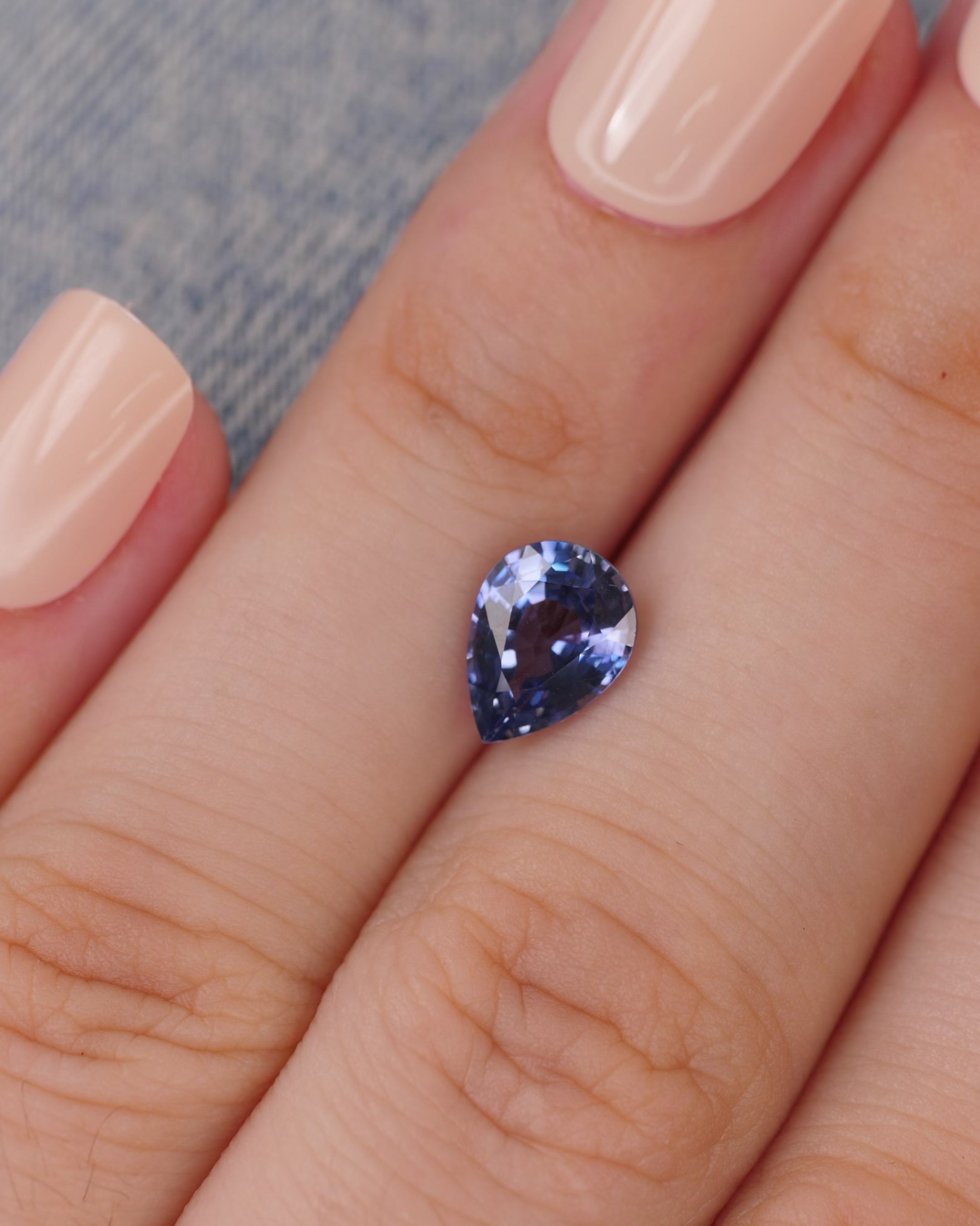 Sapphire | natural, purplish blue color, pear-cut, 8x6mm, 1.4ct