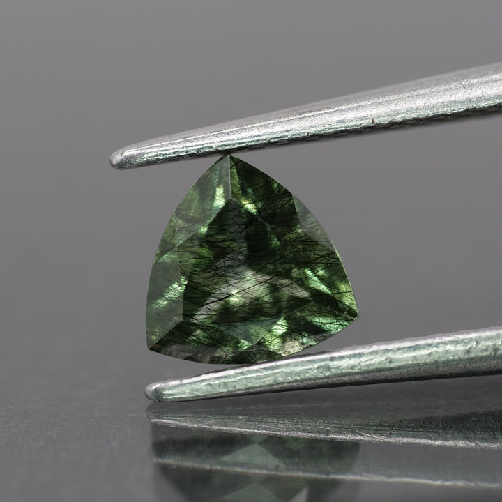 Rutile Peridot | natural, green color, trillion-cut, 6mm, 0.7ct - choose yours
